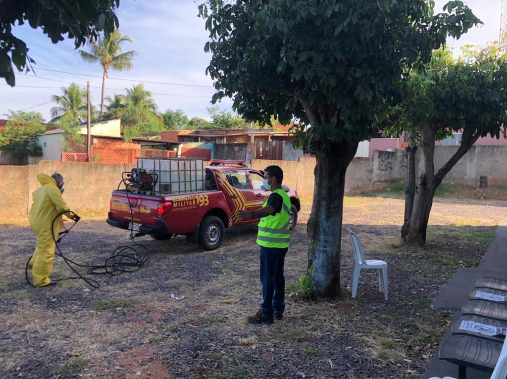 Na manhã desta sexta feira (23), o 5ºGBM deslocou uma guarnição para a cidade de água Clara, que pertence a sua área de atuação, para realizar uma série de sanitizações em diversos locais do Município.