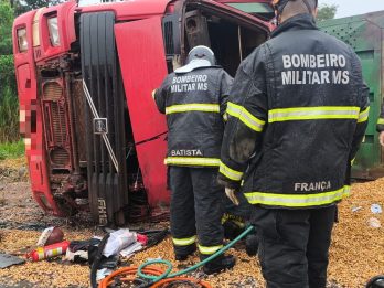 O Corpo de Bombeiros Militar de Mato Grosso do Sul (CBMMS) atendeu, na manhã desta segunda-feira (9), uma ocorrência de acidente de trânsito com tombamento de caminhão no km 97 da rodovia MS-395, nas proximidades da ponte sobre o Rio Taquarussu. A
